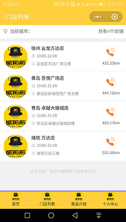 多(duō)門店(diàn)共享數據,可(kě)切換不同城(chéng)市顯示,搜索門店(diàn)并顯示門店(diàn)詳情。